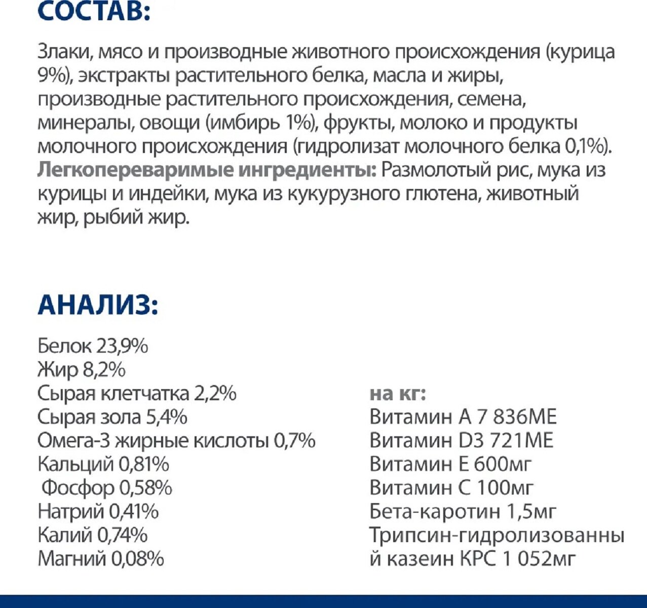 | Отзыв: | Корм очень хороший. Действительно решает проблемы с жкт у собаки. |