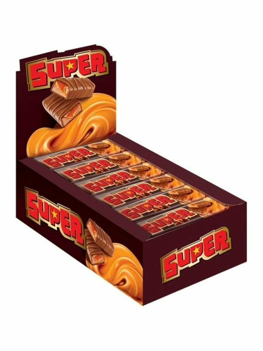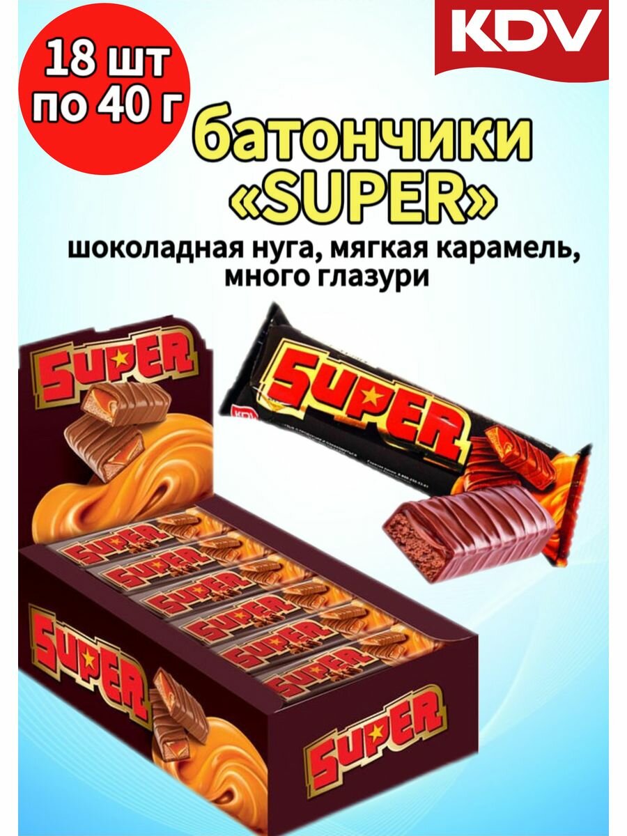 Шоколадный батончик Super с нугой и мягкой карамелью, 40гХ18шт/уп