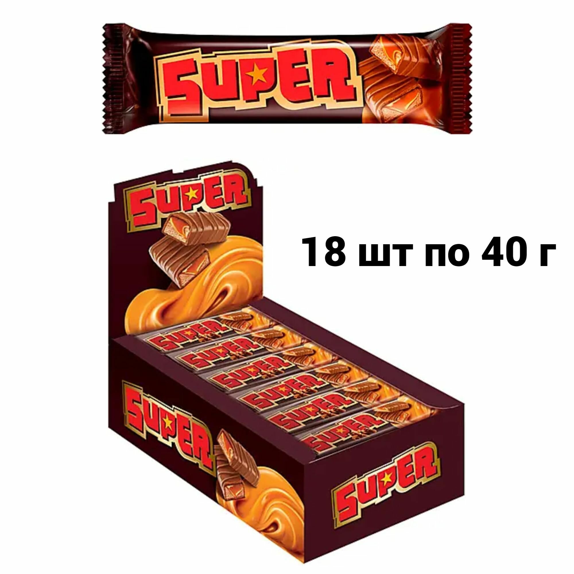 Батончик Super с карамелью и нугой, коробка, 40 г, 18 шт.