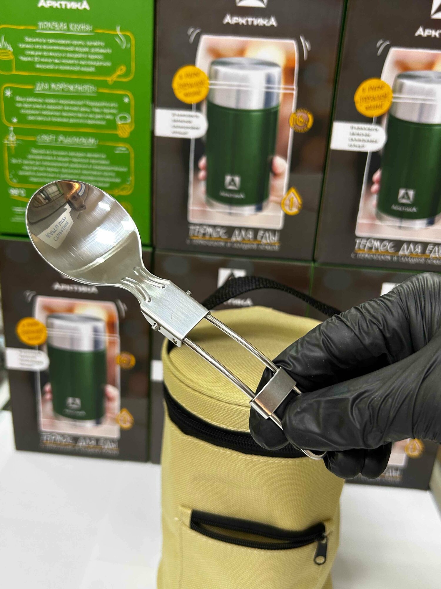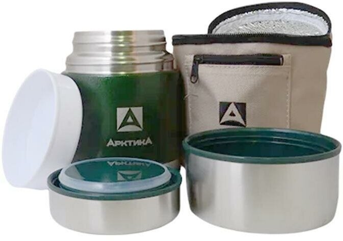 Термос для еды и супа Арктика 306-600А зелёный 0,6 литров со складной ложкой и чехлом в комплекте