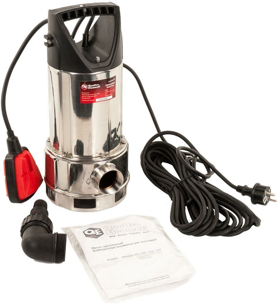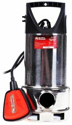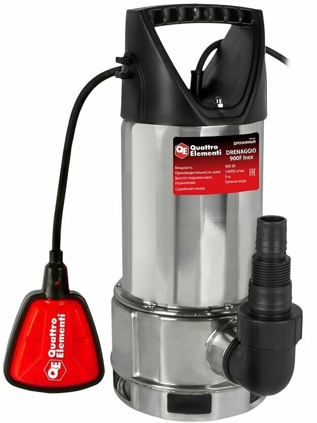 Дренажный насос QUATTRO ELEMENTI Drenaggio 900 F Inox (900 Вт, 14000 л/ч, для грязной, 9 м, 5,45кг, нерж.сталь корпуса)