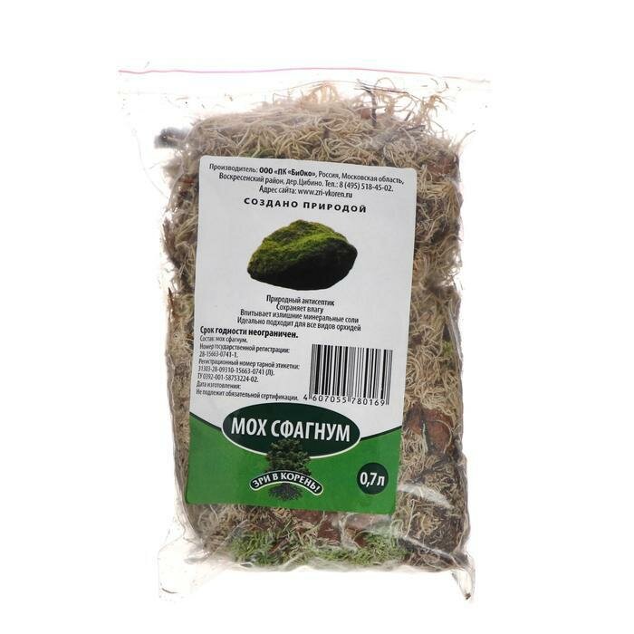 Мох-сфагнум "Дядя Удобряй", 0,7 л