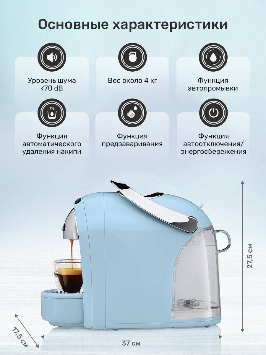 Кофемашина капсульная Ambra S18, голубая и набор 30 капсул кофе