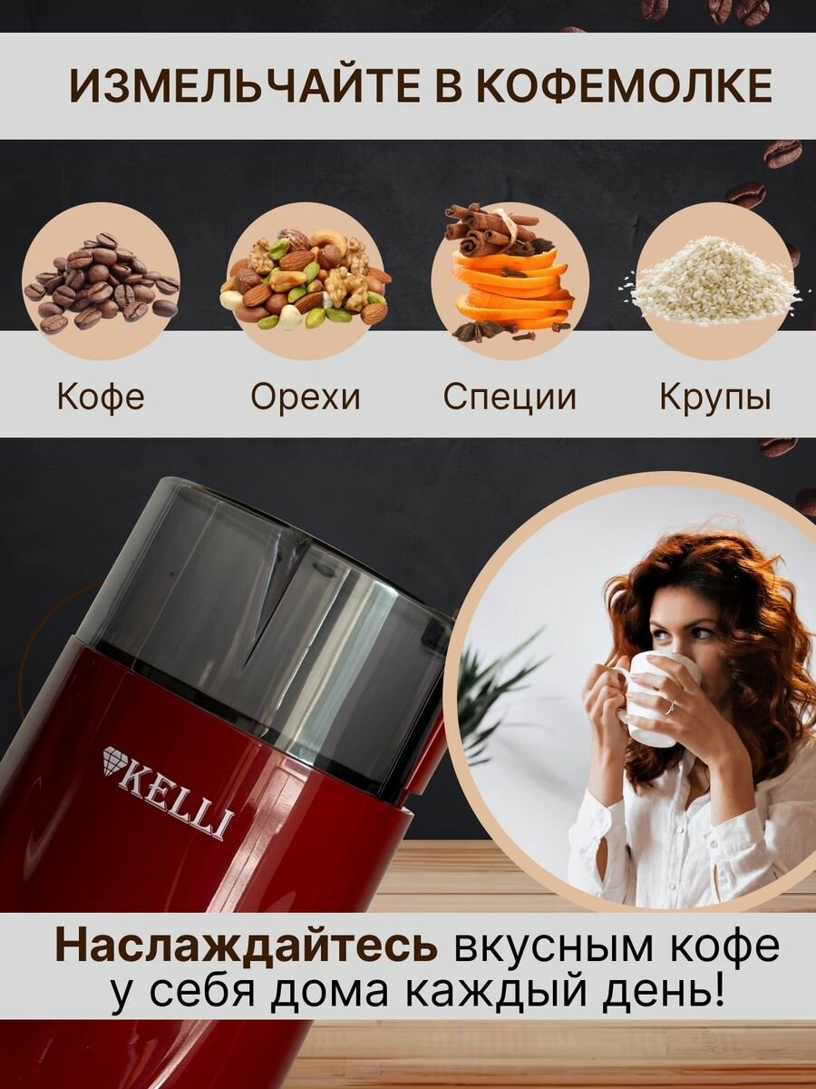 Кофемолка техно-вилка Kelli электрическая, мощность 300 Вт, красный интересное: