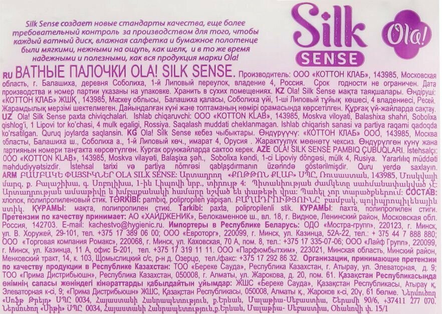 Ola! Ватные палочки Silk Sense, 200 штук в упаковке /