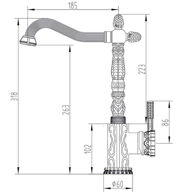 Смеситель для кухни ZorG A 117K-BR, латунь бронзовый, ретро винтажный, с орнаментом, защита от брызг