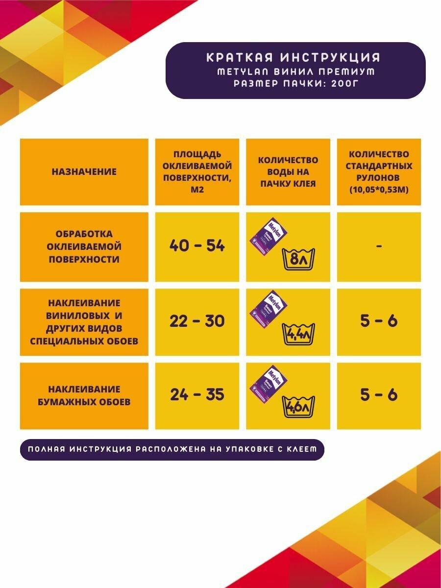 Metylan Клей для обоев Винил, премиум, без индикатора, 250 г
