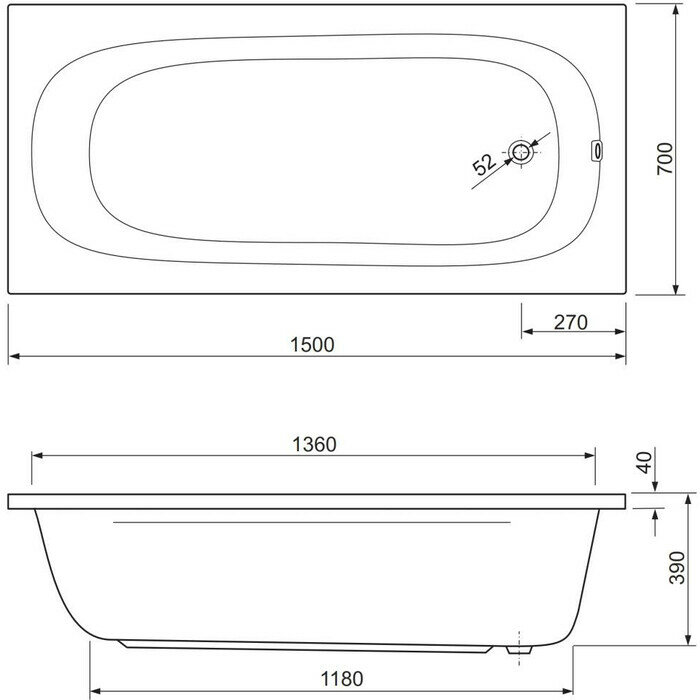 Акриловая ванна Cezares Piave 150x70 PIAVE-150-70-42-W37 без гидромассажа