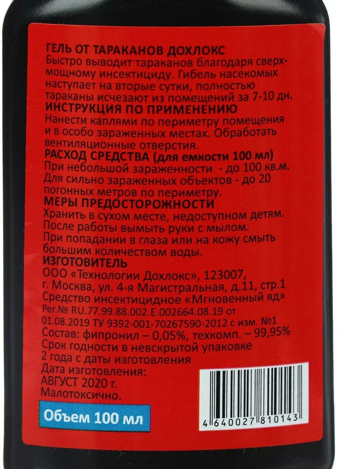 Гель от тараканов Дохлокс "Тараканья Смерть" 100 мл