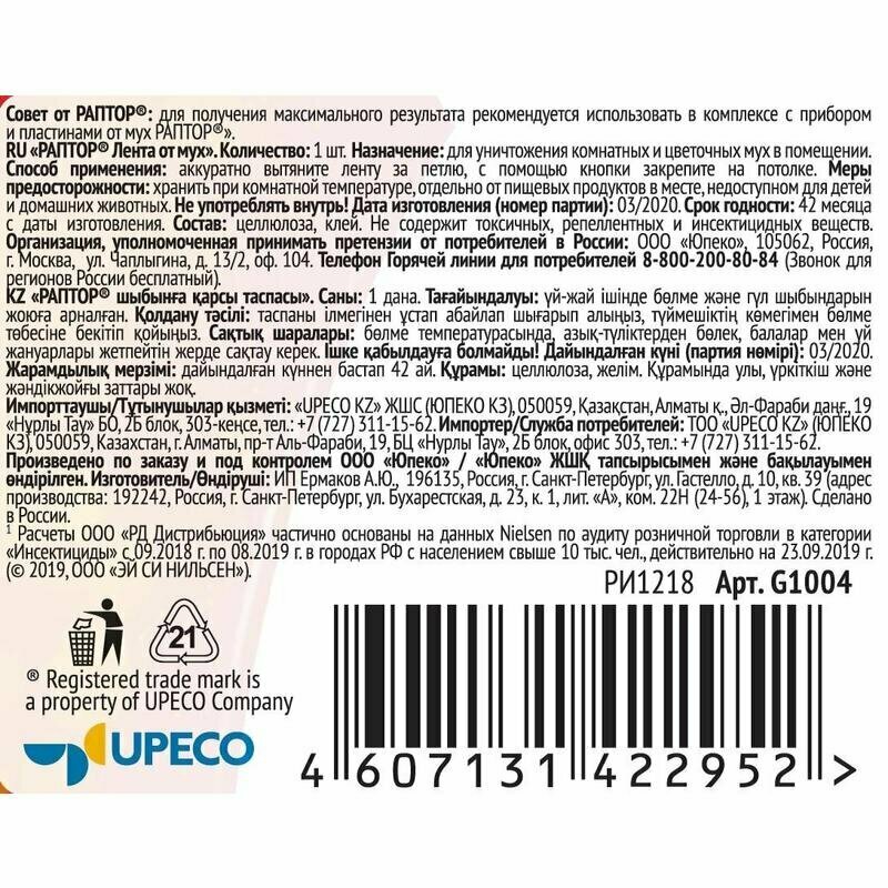 Ниже Вы можете прочитать отзывы на Раптор Липкая лента от мух 1 шт, ознакомится с подробными характеристиками, посмотреть интересные обзоры и фотографии на Раптор Липкая лента от мух 1 шт.