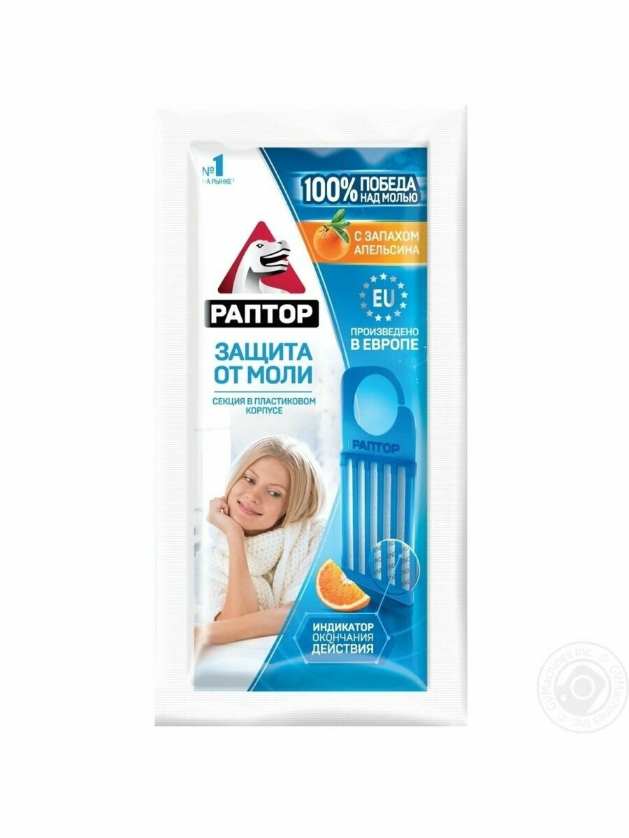 Защита от моли с запахом апельсина, раптор, секция в пластиковом корпусе, индикатор окончания действия
