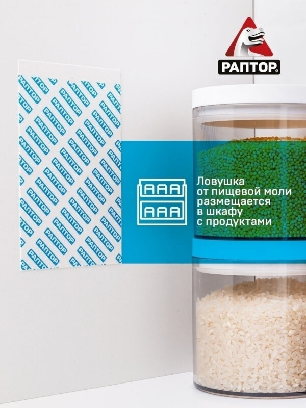Защита от пищевой моли, раптор, безопасно для продуктов, 3 месяца защиты, 2 ловушки