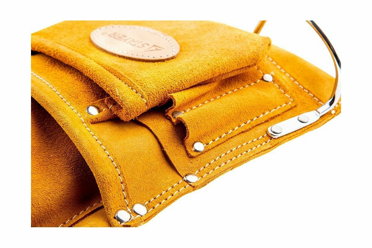 STAYER кожаный, 10 карманов, 2 скобы, пояс для инструментов (38510)