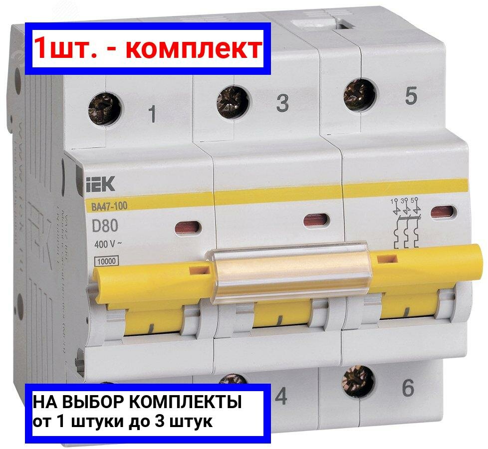 2шт. - Выключатель автоматический трехполюсный 80А D ВА47-100 10кА / IEK; арт. MVA40-3-080-D; оригинал / - комплект 2шт