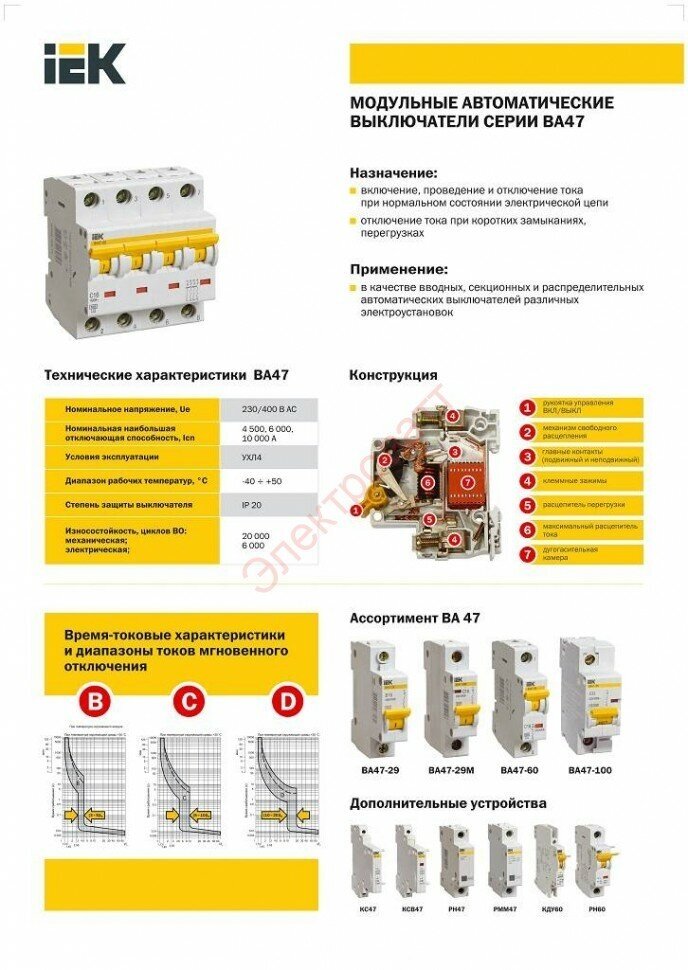 СохранитьВыключатель автоматический модульный 1п C 3А 4.5кА ВА47-29 IEK MVA20-1-003-C интересное: