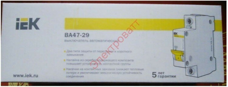 Автоматический выключатель IEK ВА47-29 1P 20А характеристика C (комплект из 5 шт)