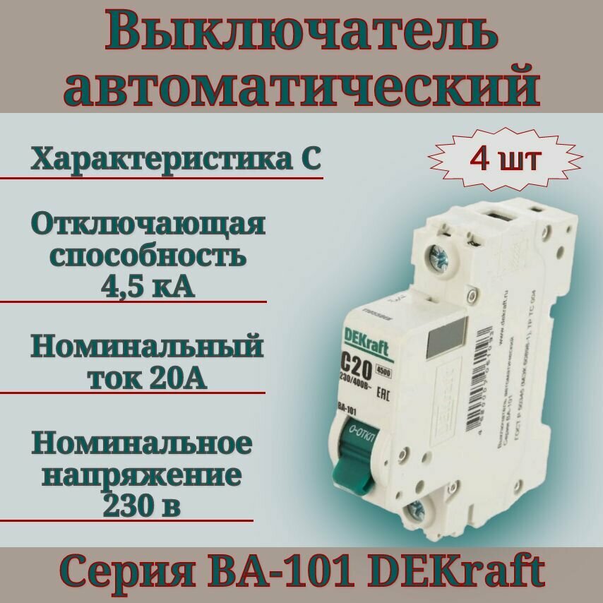 Купить Автоматический выключатель DEKraft 1P 20А характеристика C (комплект из 4 шт.)
