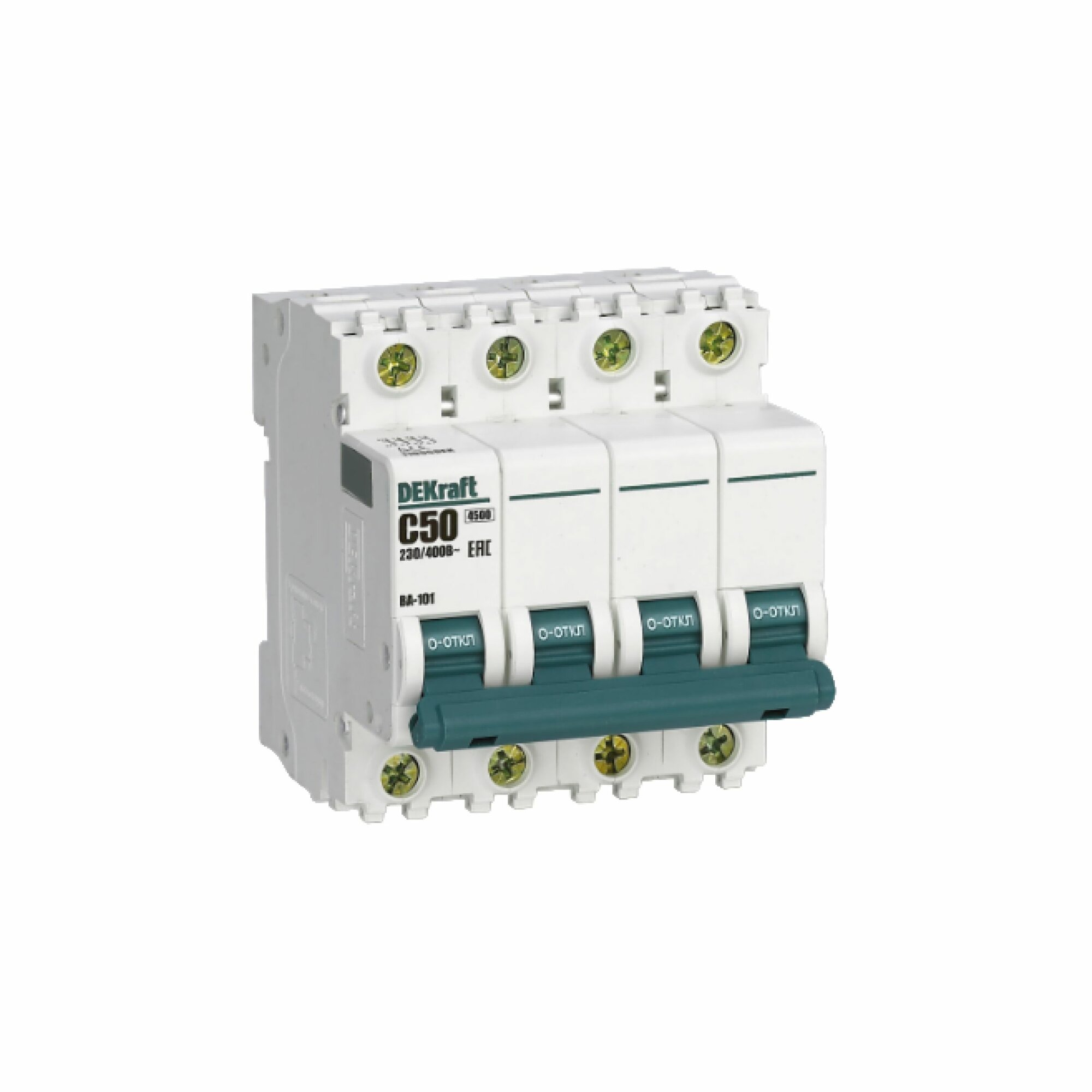Автоматический выключатель Dekraft BA-101 4Р 50А тип C 4,5 кА 230-400 В на DIN-рейку (11095DEK)