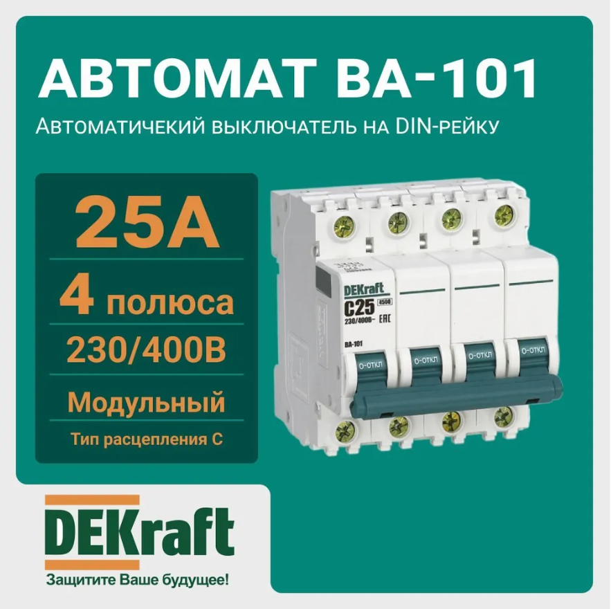 Автоматический выключатель DEKraft 4п C 25А 4.5кА ВА-101, 11092DEK