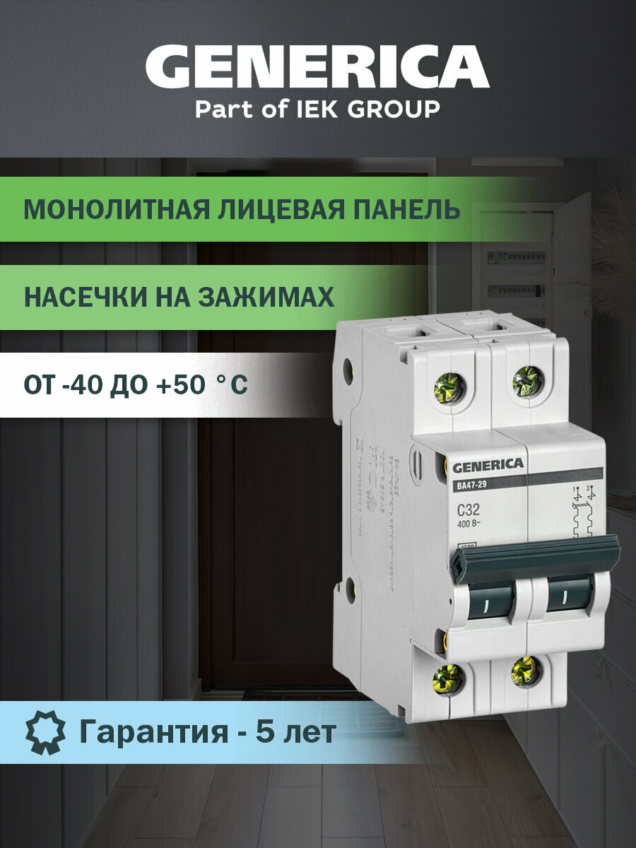 Автоматический выключатель IEK ВА47-29 2Р 32А 4,5кА х-ка С Generica Mva25-2-032-c .