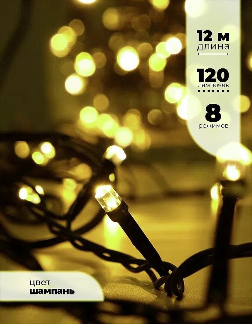| Плюсы: | Светодиодная, длина 12м, 8 режимов эффектов. |