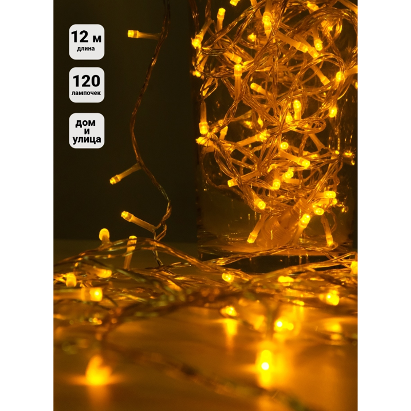 Гирлянда SHLights, 120 LED, универсальная, 12м, соединяемая до 20 гирлянд, желтый (LD120-Y-E)