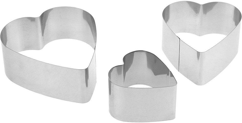 Форма для печенья из нержавеющей стали "Сердечко" набор 3 штуки: 9х10х4см; 7,5х8,5х4см; 5,5х6х4см, в блистере (Китай) интересное: