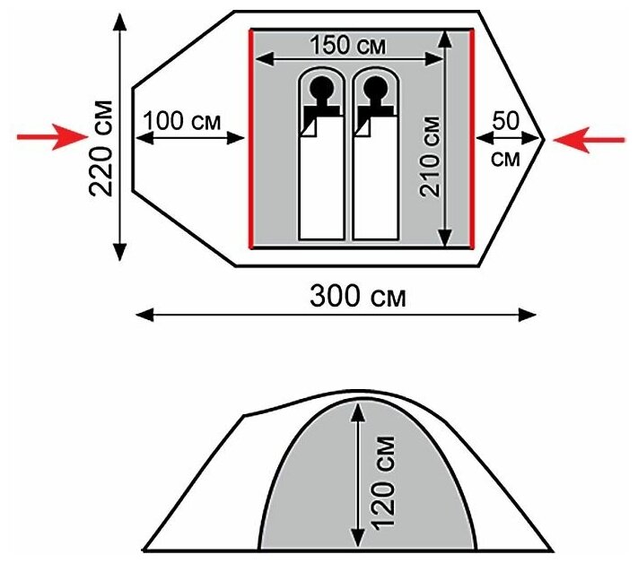 | Длина внешней палатки | 300 см |