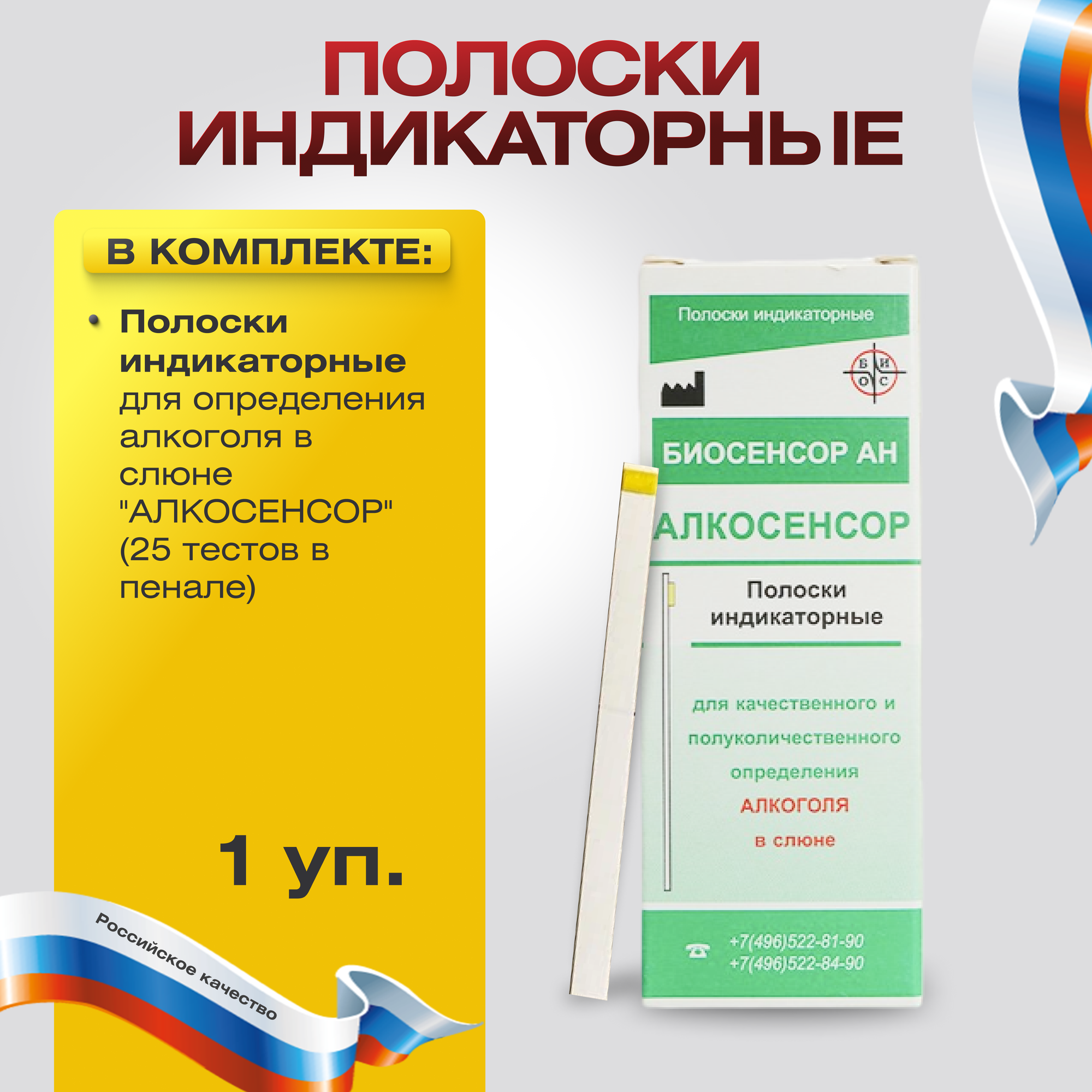 Полоски алкосенсор индикаторные для качественного и полуколичественного определения алкоголя в слюне 25 тестов в пенале