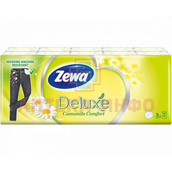Zewa Платочки бумажные носовые Deluxe Aroma Ромашка, 3-х слойные, 10 шт в уп. /