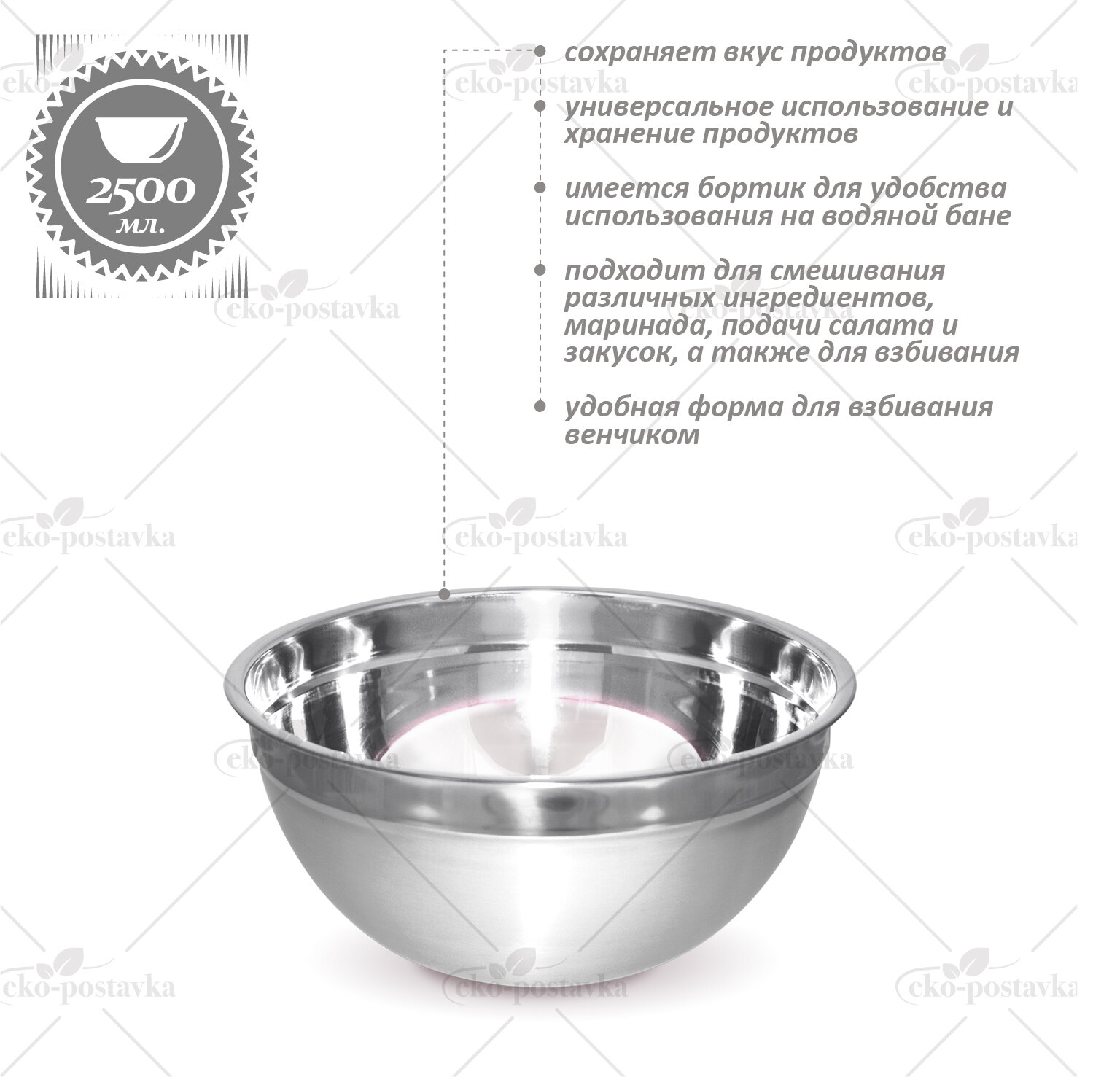 Миска из нержавеющей стали, 22*10 см, объем 2,5 л
