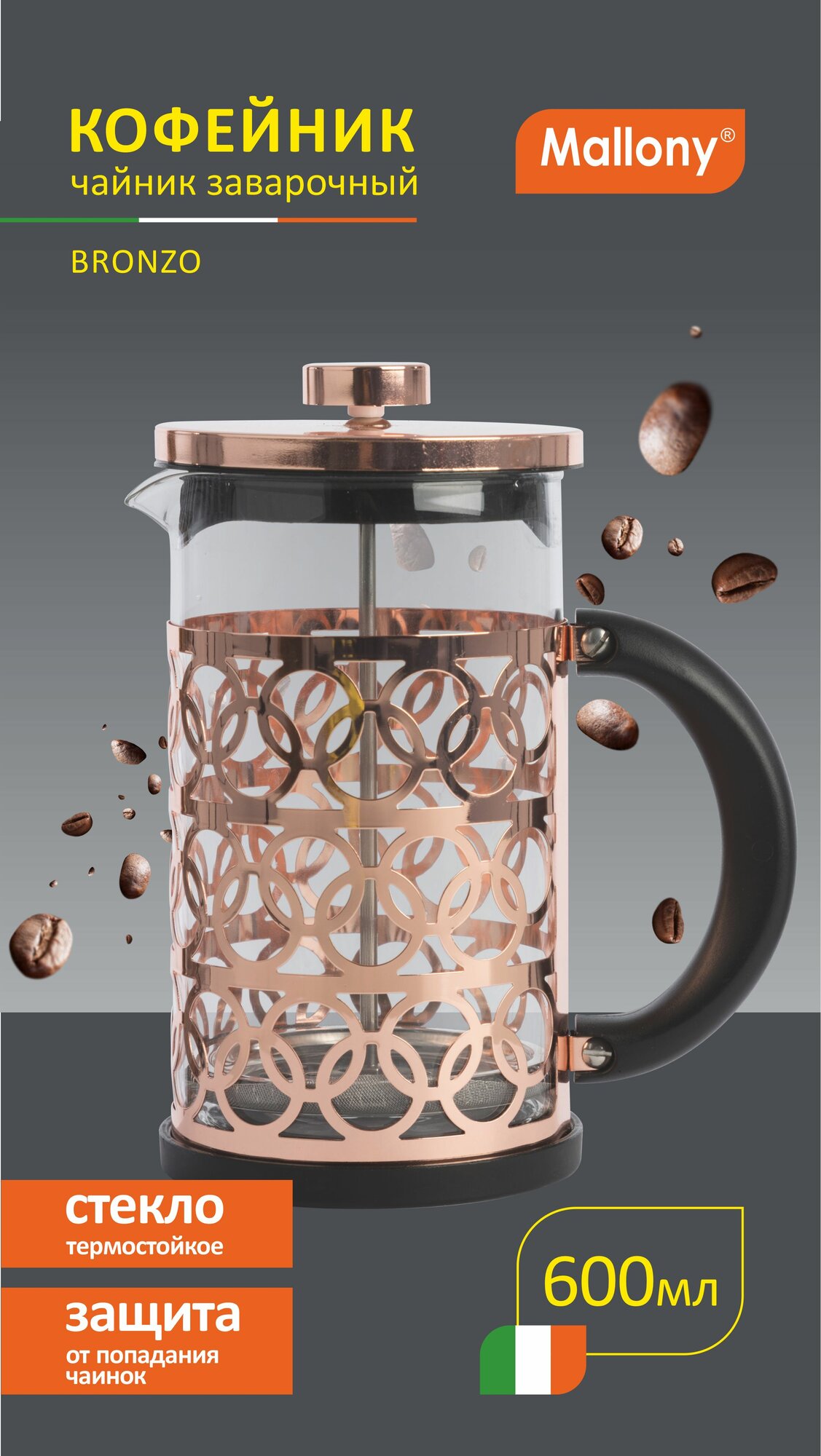 Купить Чайник/кофейник (френч-пресс) Bronzo, 600мл, нерж сталь/стекло 950154 Mallony