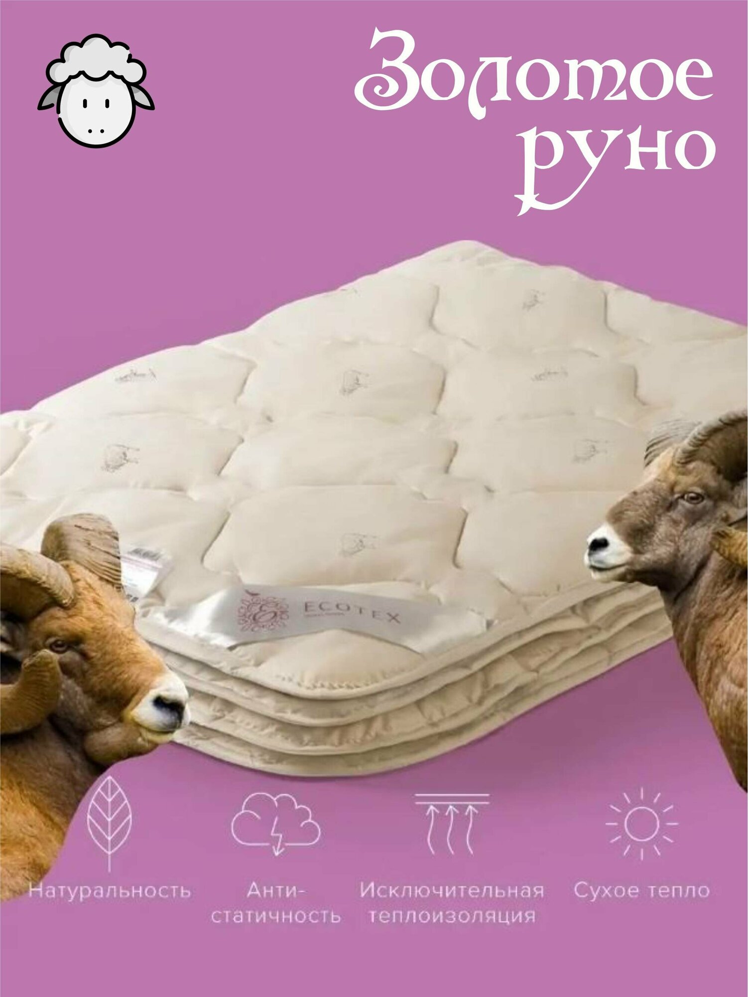 Одеяло Ecotex Золотое руно (172х205 см), шерсть мериноса, всесезонное