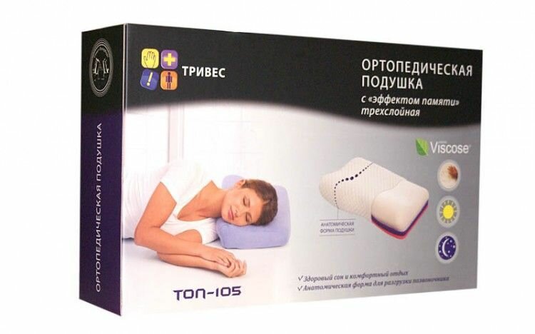 Подушка ортопедическая Тривес, Т.105 (ТОП-105), с регулировкой по высоте