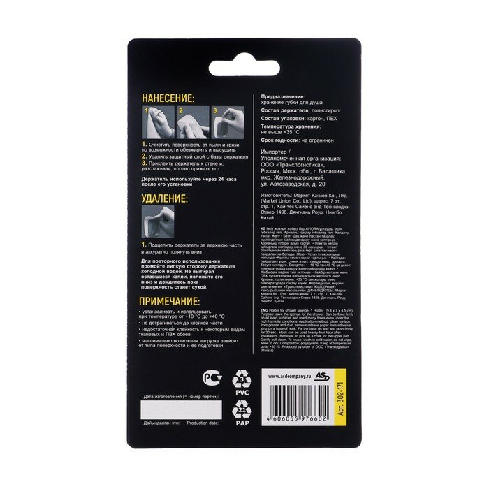 СохранитьAviora Самоклеящийся держатель Aviora для губки в ванную с системой бесследного удаления 9,8*7*4,5 435024 интересное:
