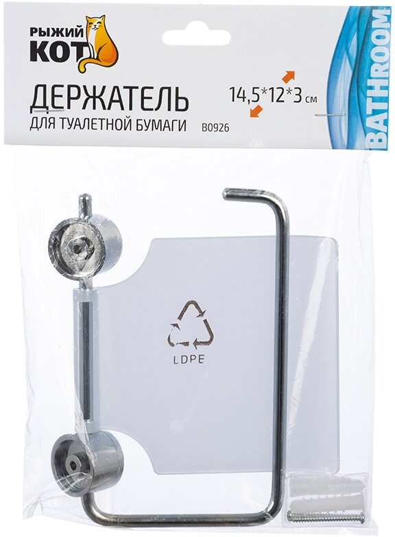 Держатель для туалетной бумаги, хром/пластик, крепление шуруп B0926, 2487 Рыжий Кот