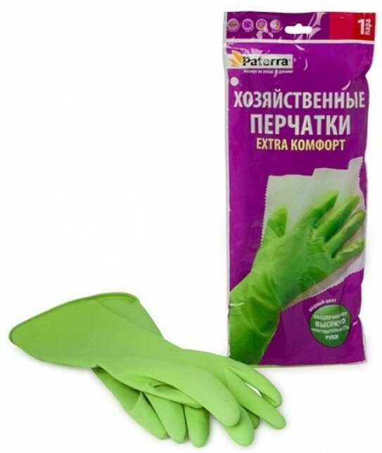 Перчатки хозяйственные PATERRA Extra Комфорт 2шт резиновые S