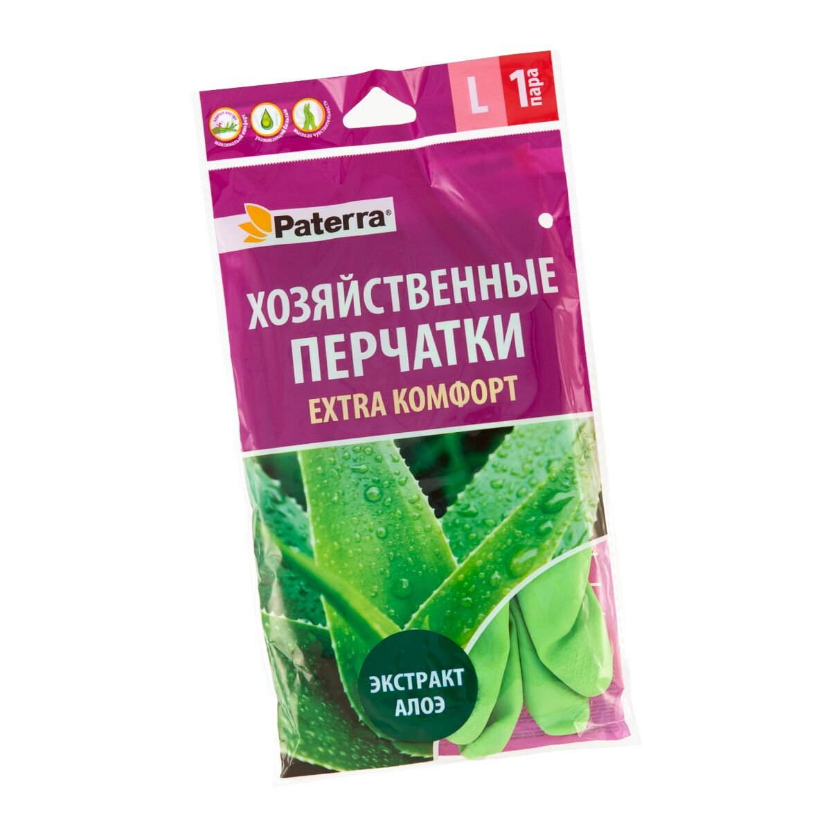 Перчатки резиновые EXTRA Комфорт с алоэ, р-р L, PATERRA