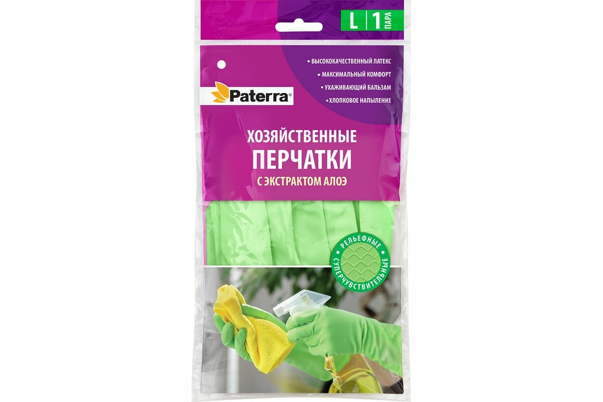 PATERRA Перчатки резиновые EXTRA komфорт с алоэ р-р L 402-417