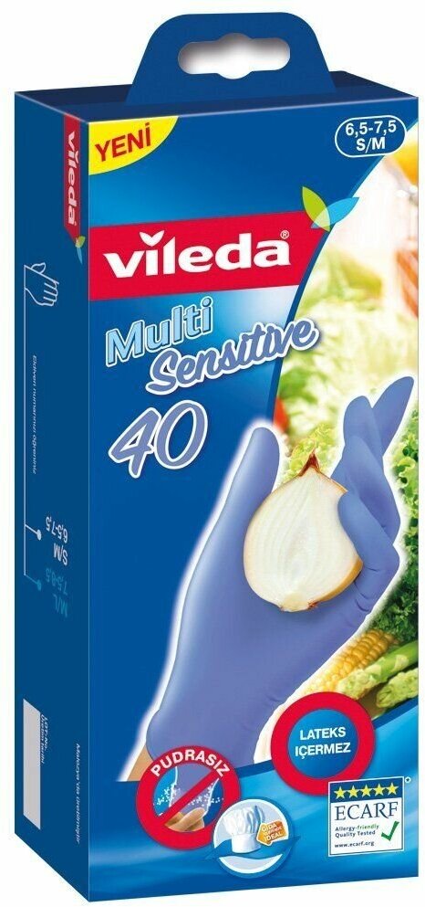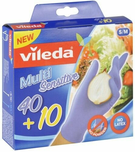 Vileda Перчатки Мульти Сенситив одноразовые нитриловые S/M 40шт
