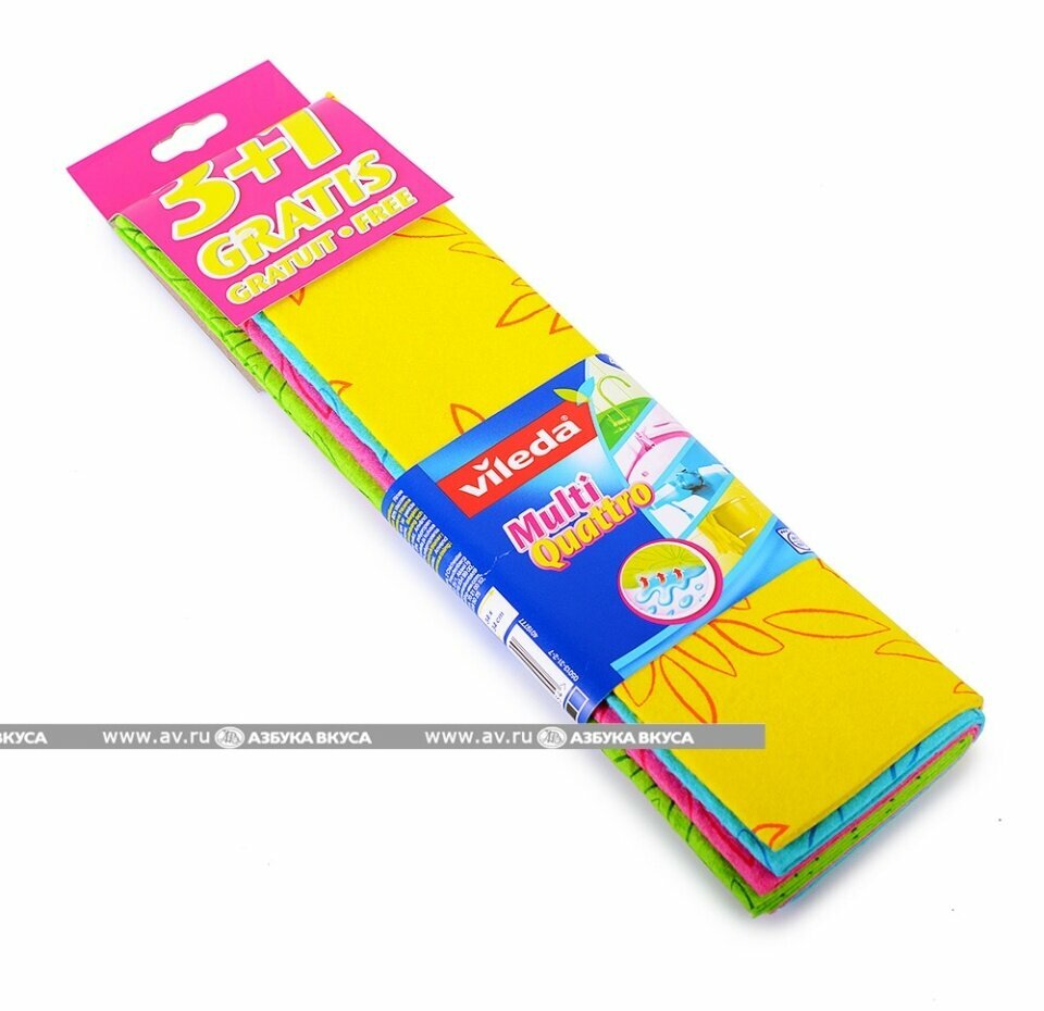 Салфетка Vileda универсальная Мульти Кватро, желтый/голубой/зеленый/розовый, 4 шт. интересное:
