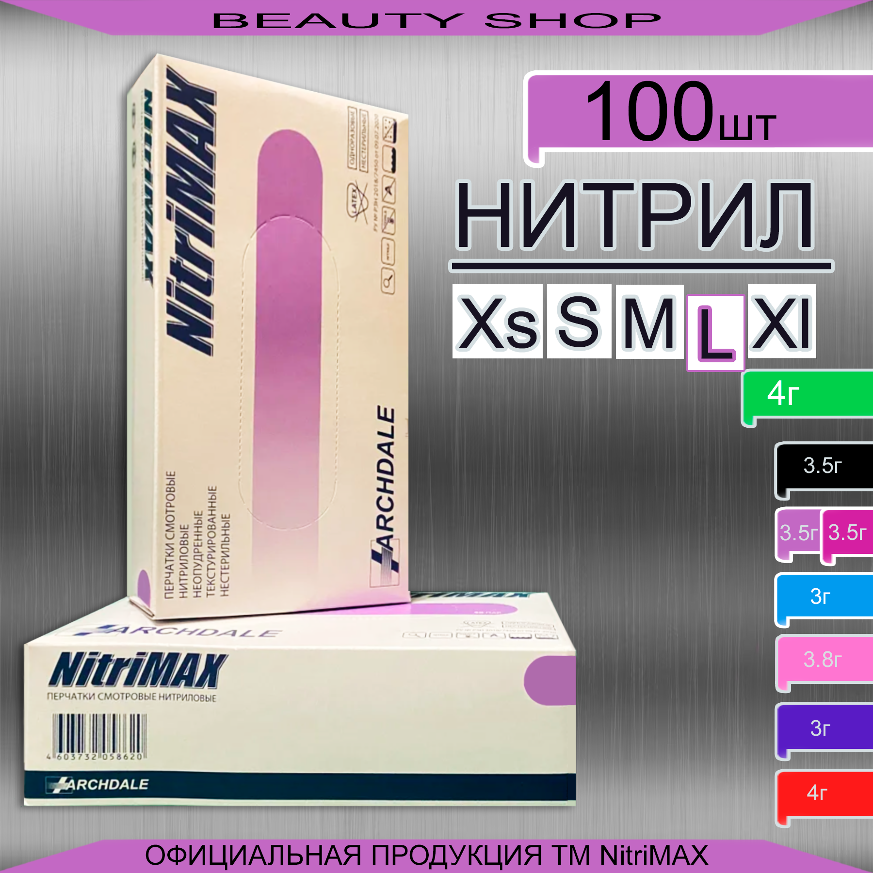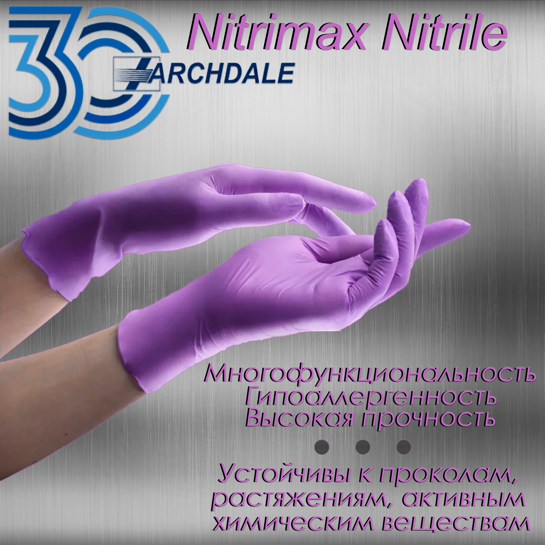 Перчатки одноразовые медицинские Нитриловые Archdale NitriMAX,Сиреневые,L, 100 штук/50 пар, Неопудренные, Гипоаллергенные
