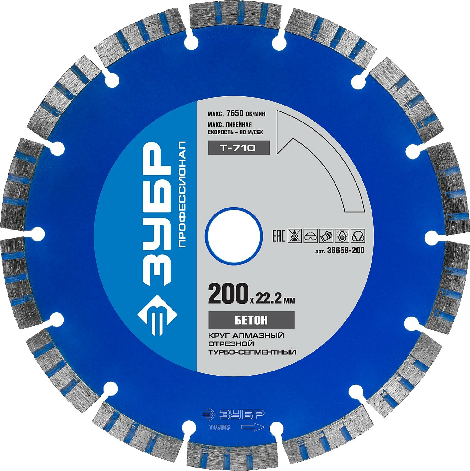 ЗУБР Т-710 бетон 200 мм (22.2 мм, 10х2.6 мм), Алмазный диск, Профессионал (36658-200) интересное: