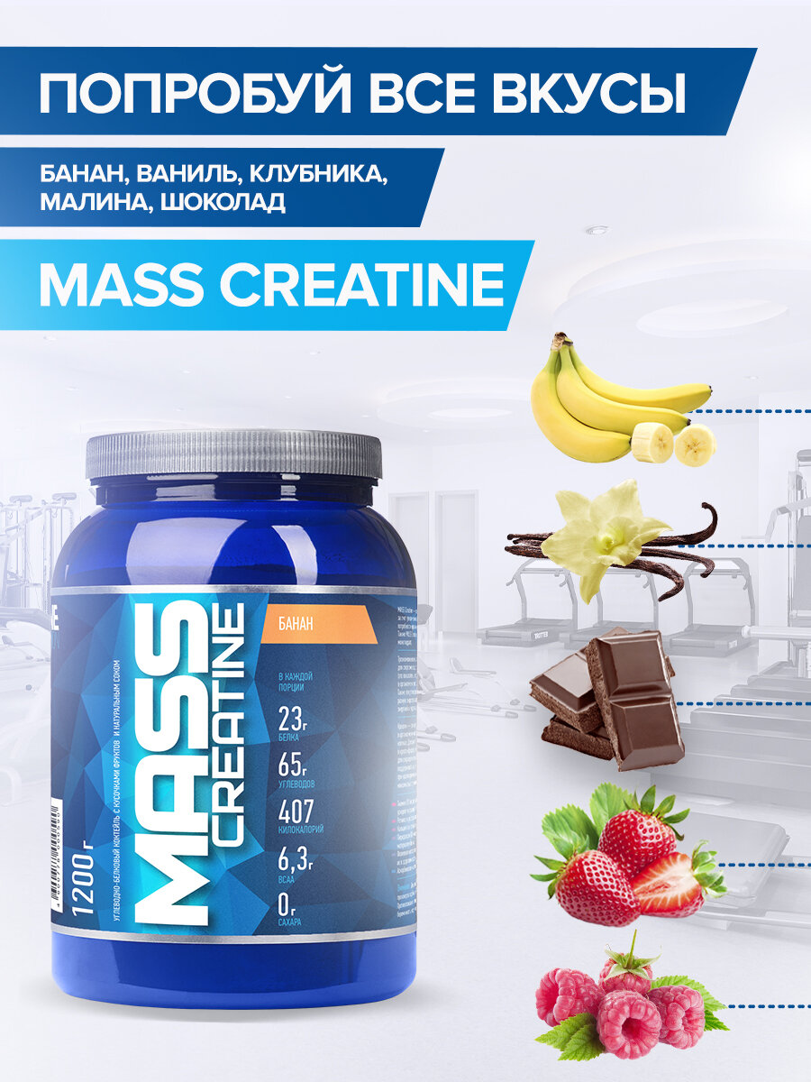 Гейнер МАСС+ креатин / MASS+creatine R-Line 1200 гр. (Ваниль)