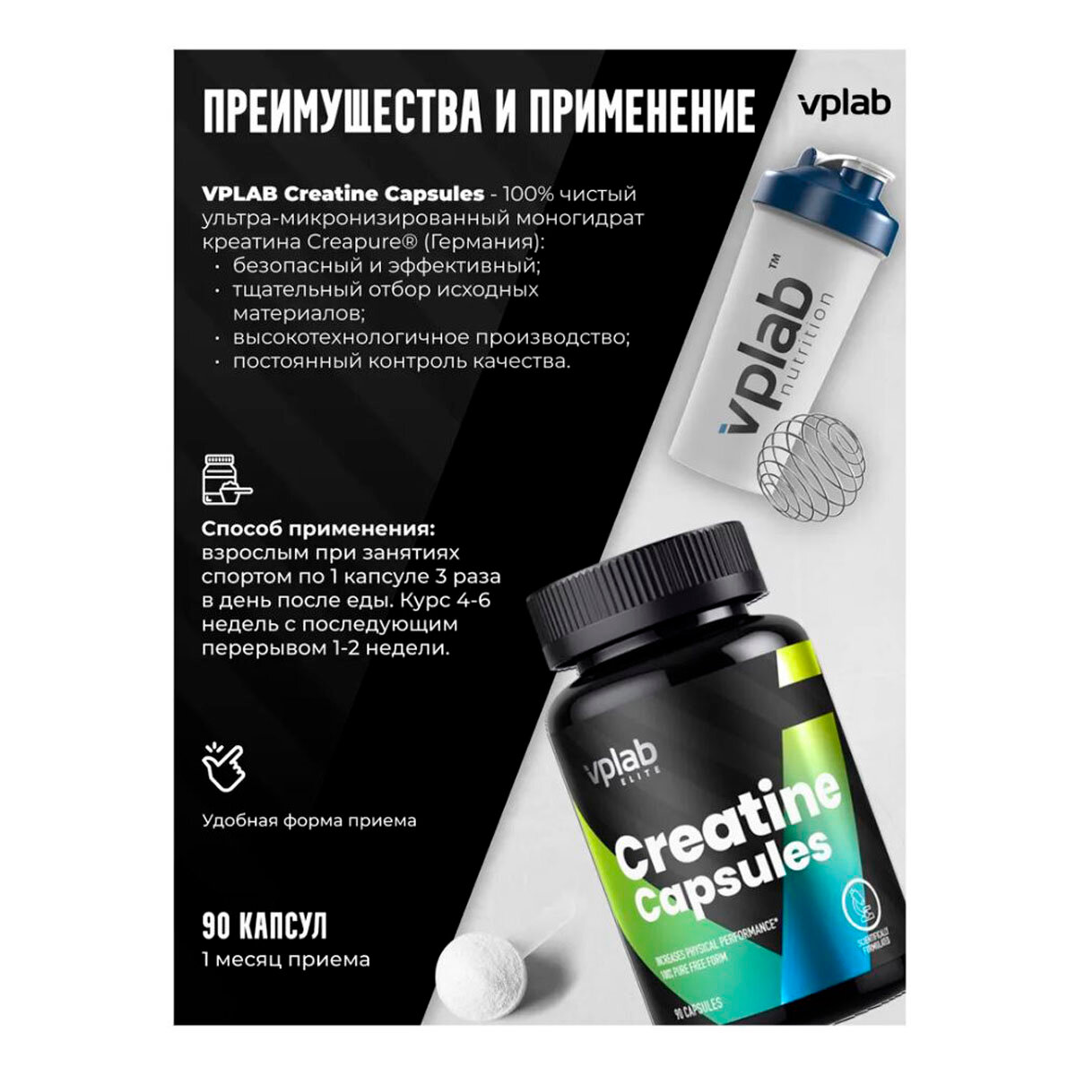 Купить Креатин моногидрат VPLAB Creatine, 90 капсул / Для набора мышечной массы и выносливости / Для взрослых, мужчин и женщин