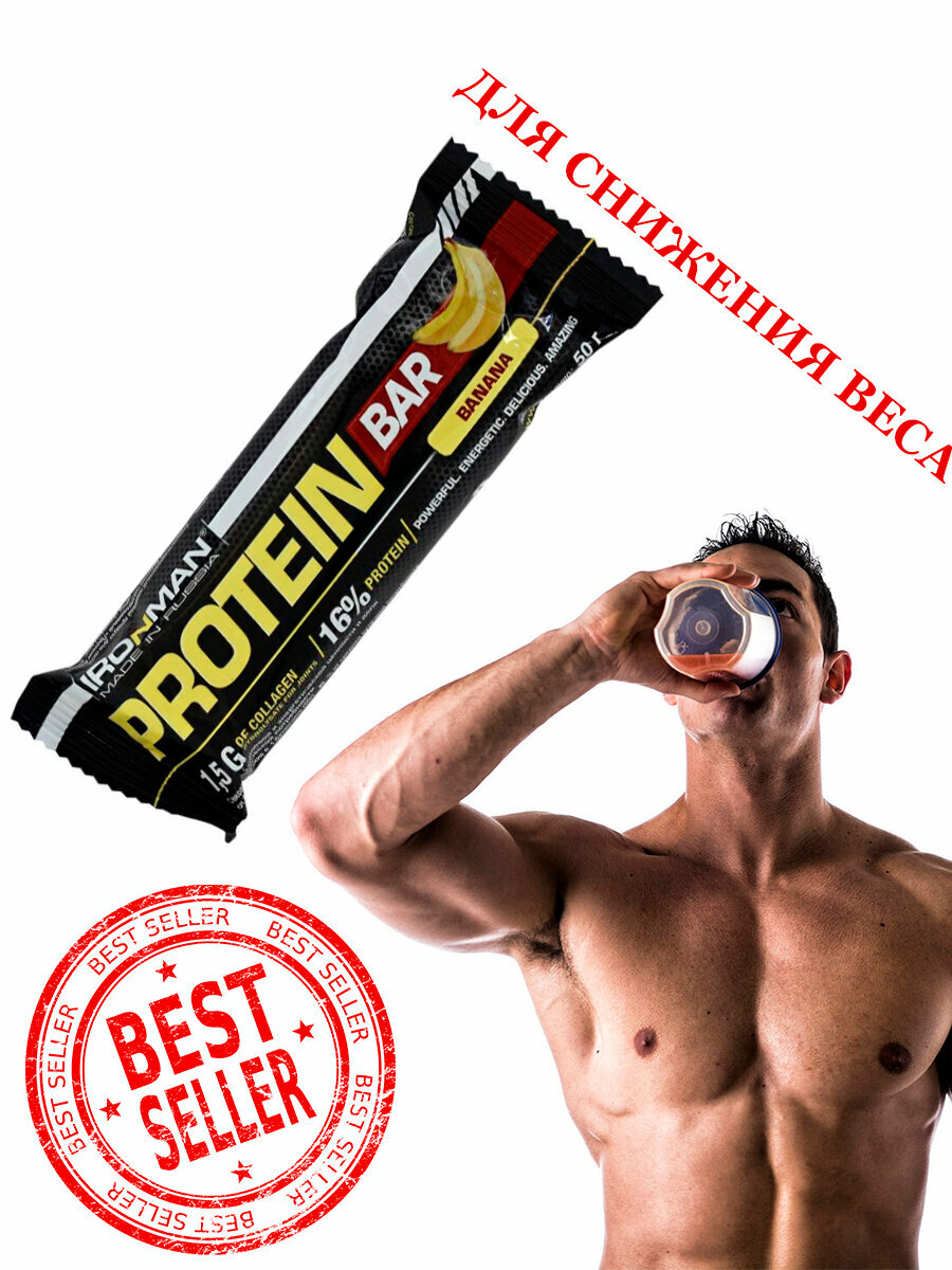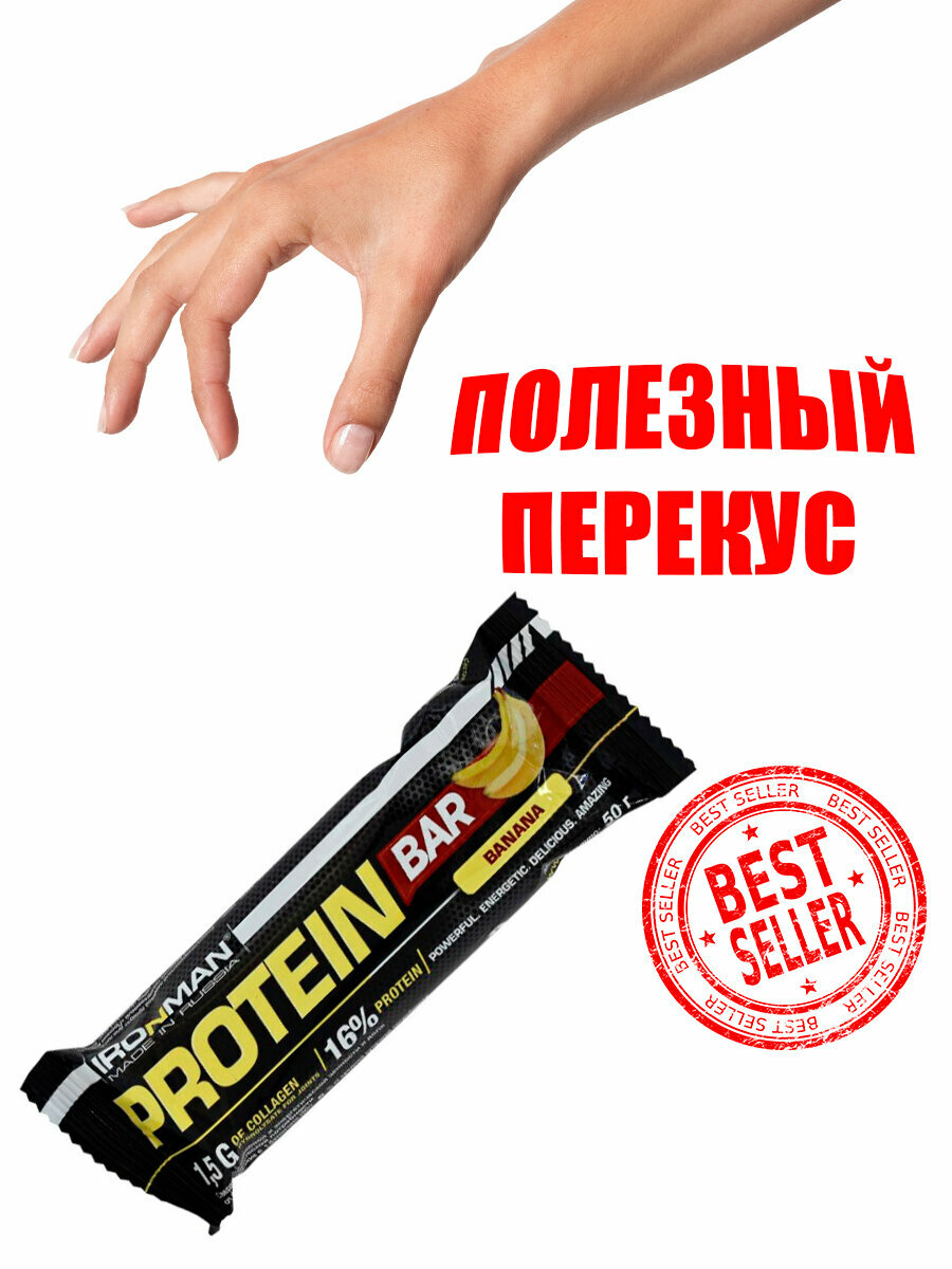 IRONMAN Батончик Protein Bar с коллагеном, банан, тёмная глазурь, 50 г