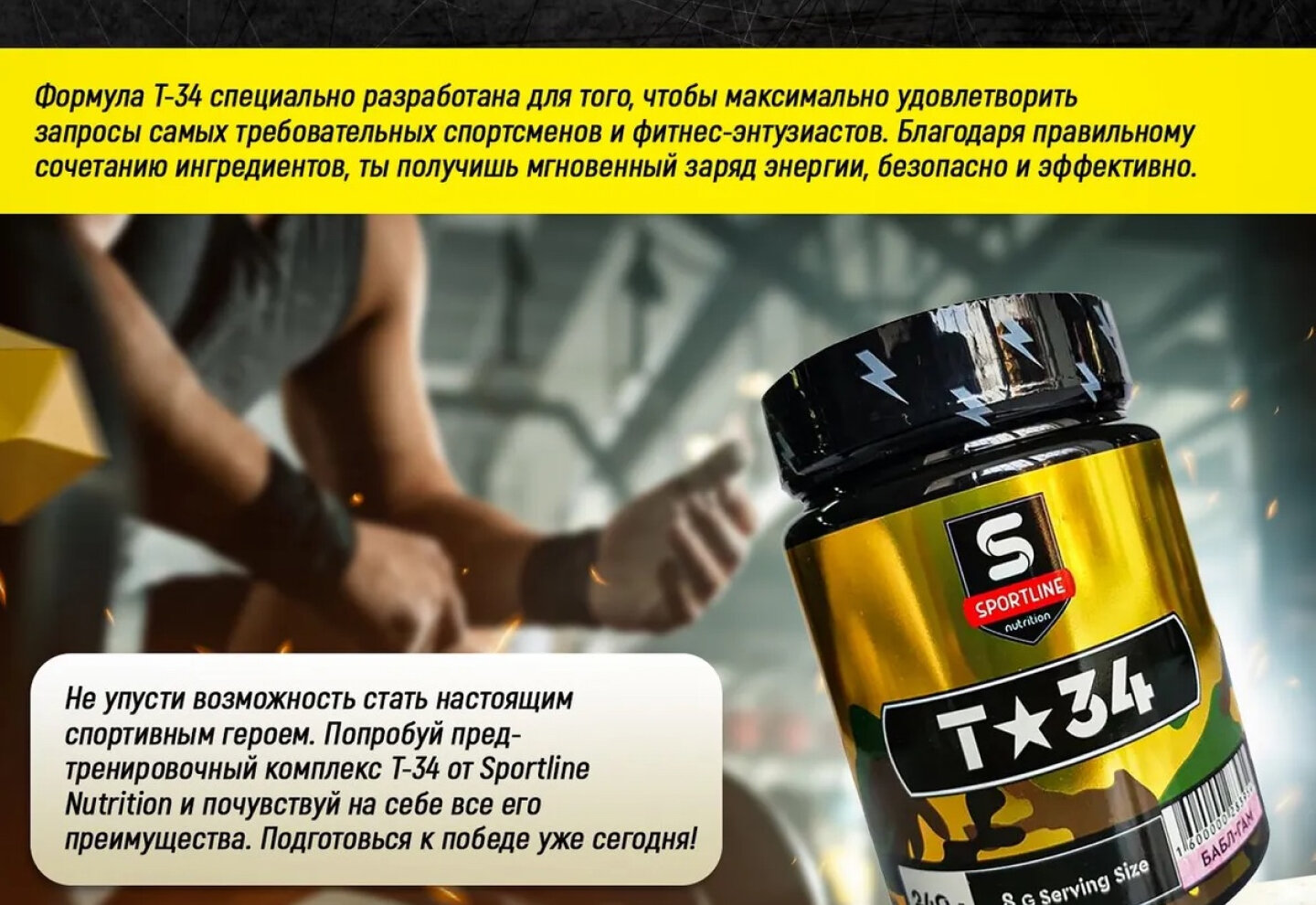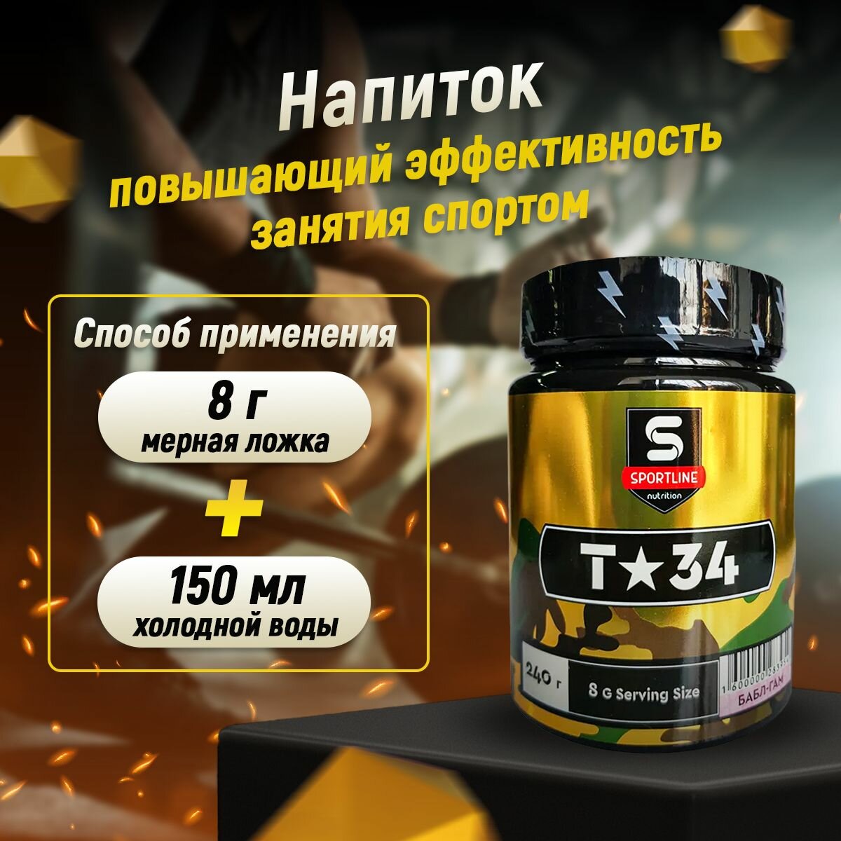 Предтренировочный комплекс SportLine Nutrition T-34, Bubble Gum, 240 гр.