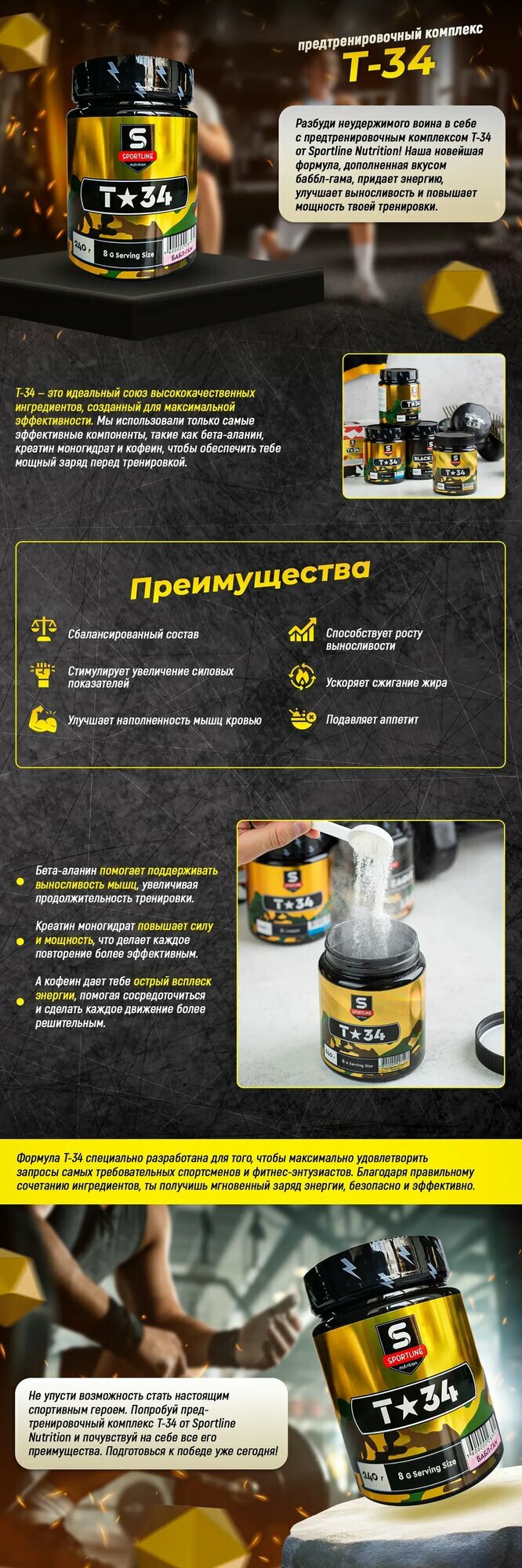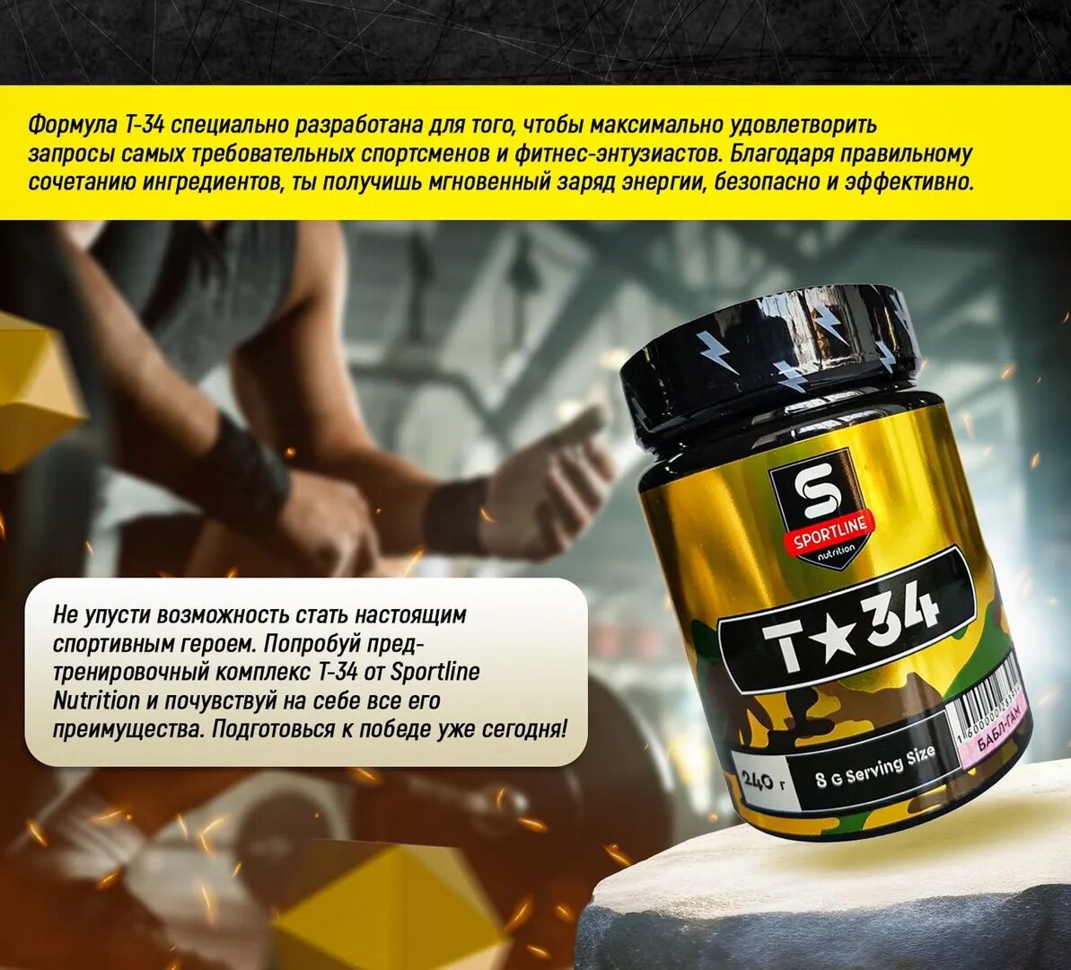 Предтренировочный комплекс SportLine Nutrition T-34, адреналин, 240 г SportLine 4600925 .