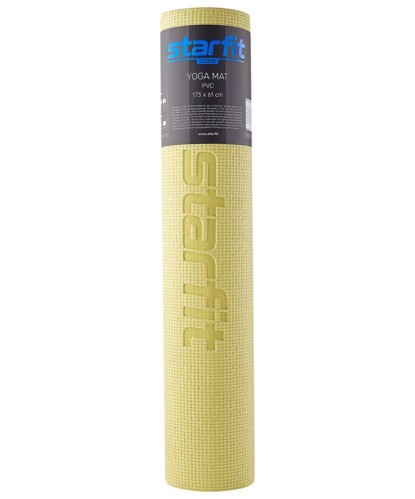 Коврик для йоги и фитнеса STARFIT FM-101 PVC, 0,6 см, 173x61 см, желтый пастель