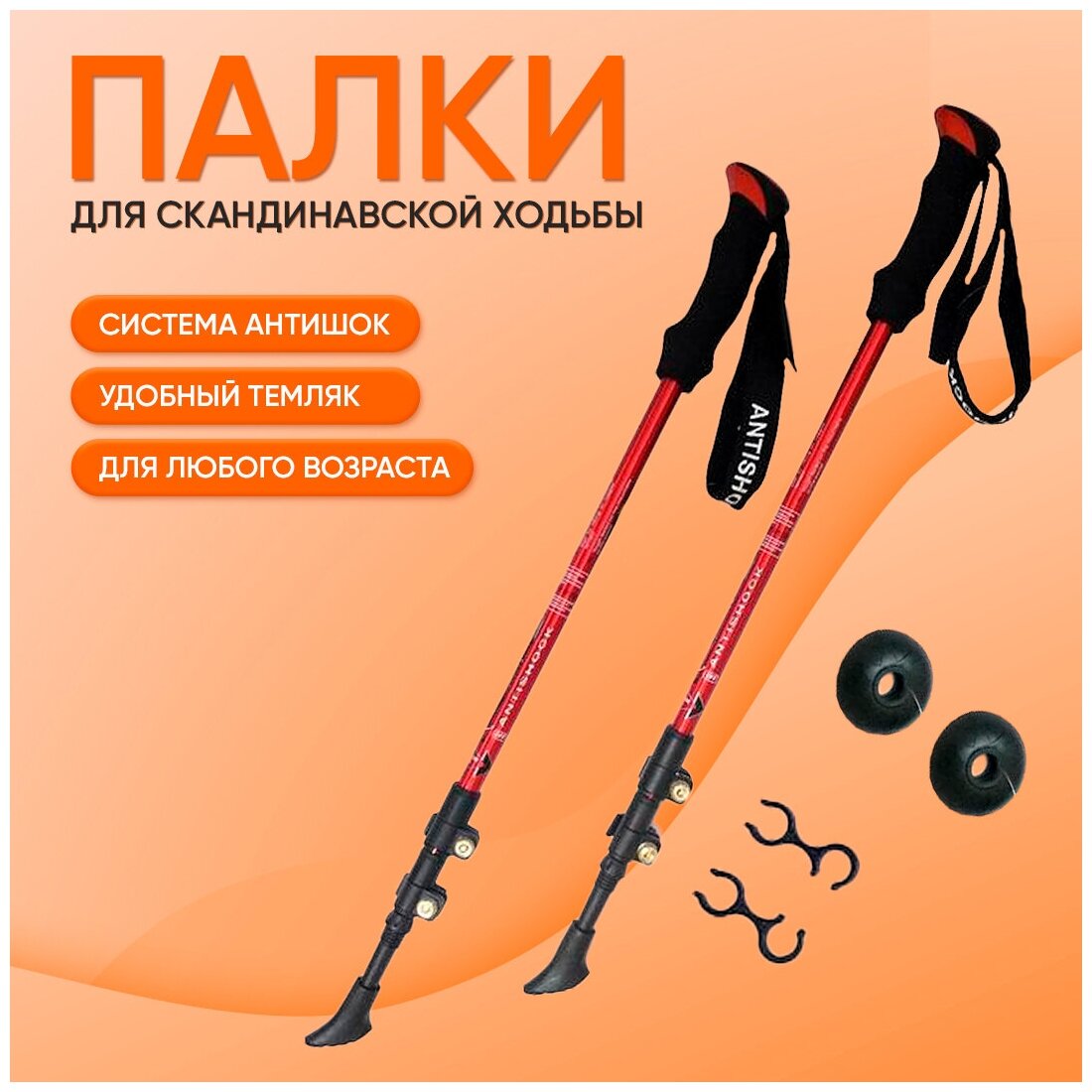 Купить Телескопические палки для скандинавской ходьбы F18444 86-135 см с ремешками с быстрой системой регулировки для любителей с начальным уровнем подготовки из алюминиевого сплава для ходьбы по асфальту песчаному грунту земле и снегу, унисекс, красный